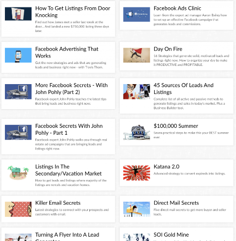 A huge library of resources, new coaching, inspiration and latest interviews with real estate rockstars to help you get more business NOW. Over 100 sessions and growing...